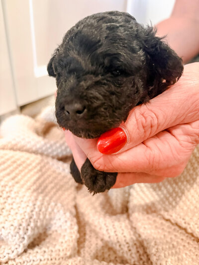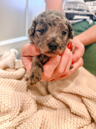 Amanda was super super patient with us as we were apprehensive about getting a puppy that we have never met! We were inexperienced with doodles and no matter the amount of research we couldn’t seem to learn enough! She answered all of our 1 million questions, didn’t once seem agitated. Mando or “Riley” fits in wonderfully- we couldn’t get a better pup- he is picking up on house training quickly, although they had done a great job laying the ground work. He adores our kids, he does amazing at night with sleep and letting us know he has to go out! He’s gorgeous and the softest puff ball around! He loves to snuggle! You can’t ask for a better person to work with and matching up puppy with family even from so far away!